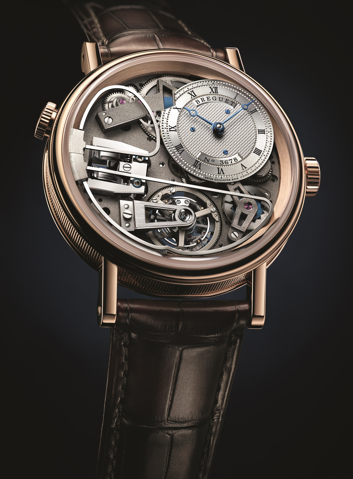 Grand Sonnerie: es un mecanismo de cuartos combinado con un repetidor. Cada cuarto de hora reproduce las horas y posteriormente los cuartos, gracias a dos gongs. Adicionalmente, puede reproducir las horas mediante la pulsación de un botón.