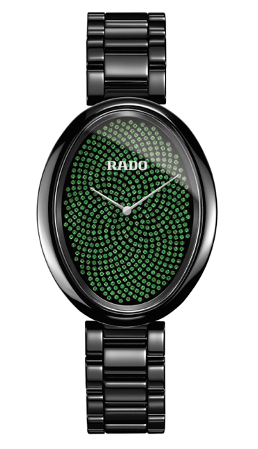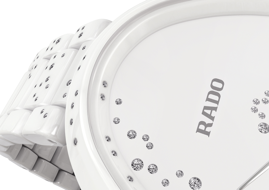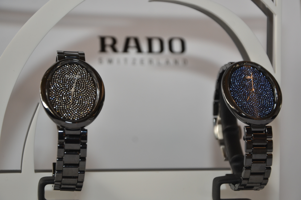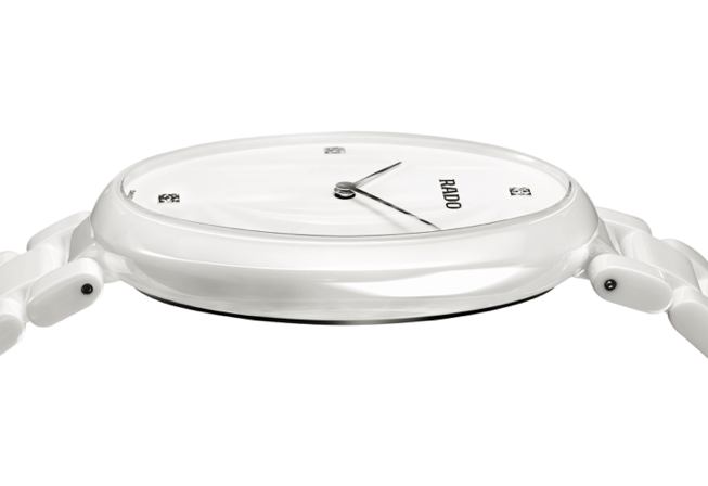 Asimismo RADO presentó el Esenza Ceramic Touch, el primer reloj de cerámica táctil que obedece a la directriz que dictan los dedos en su acción de manipulación sobre la caja. A las 8 horas se desbloquea el sistema, continuando con un recorrido suave de las 12 a las 3 h, justo ahí podremos realizar el ajuste de las horas (lado izquierdo del bisel) y los minutos (lado derecho del mismo).