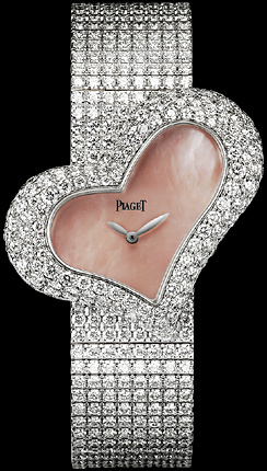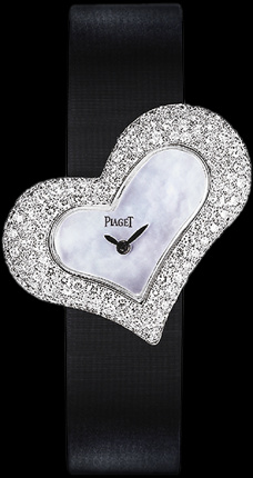 Feminidad en su máxima expresión, un corazón irregular con carátula en madreperla y correa en satén o engaste de diamantes… puro amor.