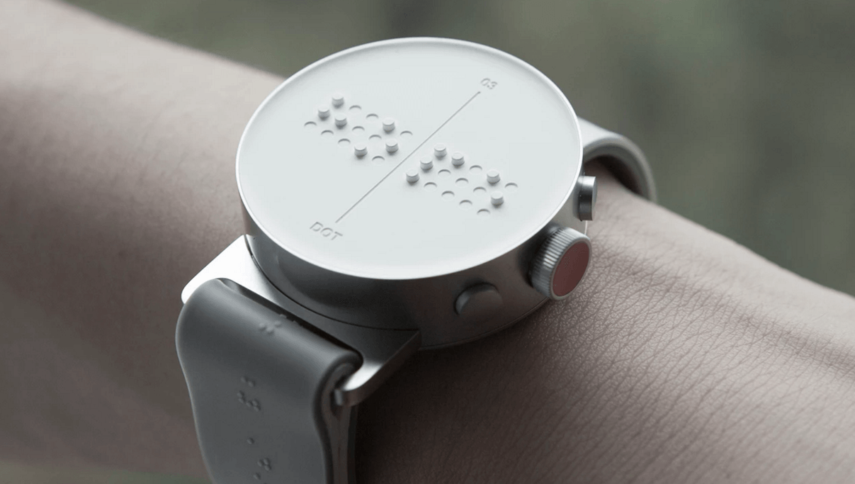 Ahora, una compañía surcoreana llamada Dot ha desarrollado por primera vez un reloj inteligente que utiliza el sistema braille. Destinado a ayudar a las personas con discapacidad visual para llevar una vida mucho más independiente. Dot Watch, es un reloj de pulsera con un diseño minimalista que ofrece información más allá del tiempo.