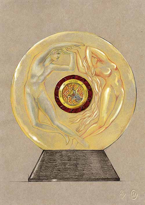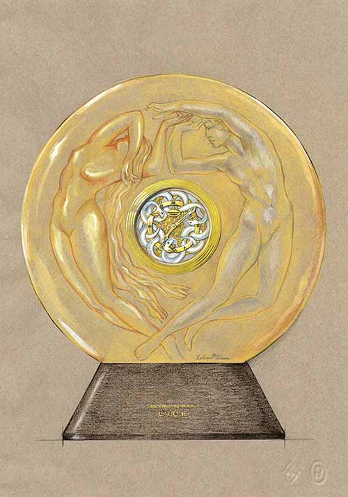 El proyecto Le Jour et La Nuit, realizado conjuntamente por Parmigiani Fleurier y Lalique, refleja la fusión entre la Alta Relojería y el savoir-faire joyero y cristalero más puro. Esta colaboración ha dado lugar a la creación de dos relojes de mesa, el péndulo Soleil de Gaia y el péndulo Serpent, que representan los temas del día y la noche y que confluyen en un buen hacer increíblemente especializado. Para dimensionar el extraordinario trabajo conjunto de estas dos casas basta decir que el tiempo de trabajo invertido para estas piezas suma 2,160 horas.