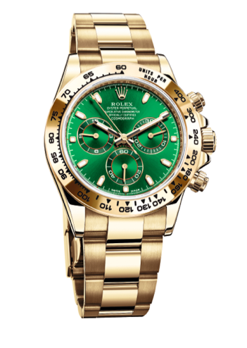 El Cosmograph Daytona está equipado con un movimiento mecánico de alto rendimiento completamente desarrollado y manufacturado por Rolex. Este cronógrafo de legendaria fiabilidad, es el instrumento ideal para medir el tiempo transcurrido y determinar la velocidad media. El emblemático Daytona se creó para ser la mejor herramienta de cronometraje de los pilotos en las carreras de resistencia, gracias a su precisión, fiabilidad y a la excelente legibilidad de sus funciones. La aguja central de los segundos del cronógrafo permite medir un tiempo con la exactitud de 1/8 de segundo, mientras que los dos contadores situados en la carátula en la posición de las 9 h y las 3 h, muestran el tiempo transcurrido en horas y minutos, respectivamente.