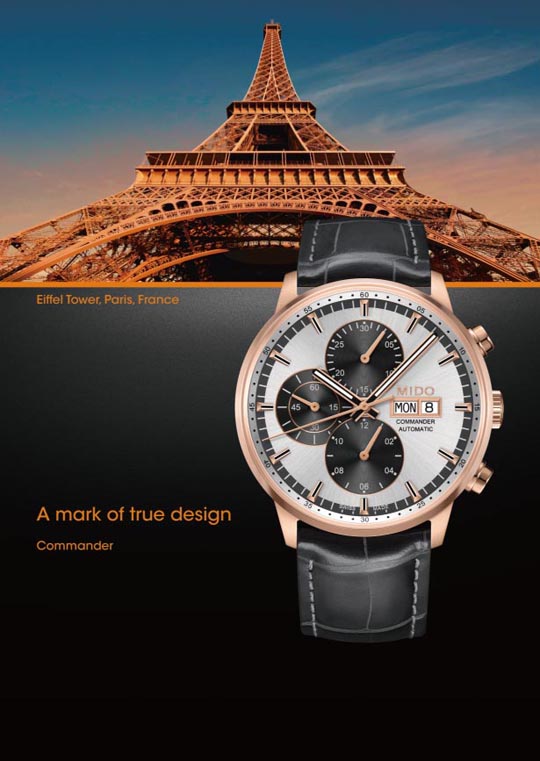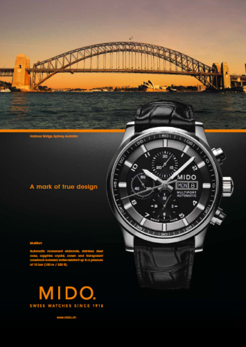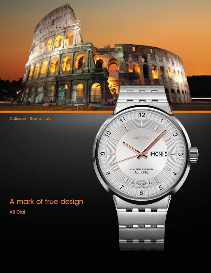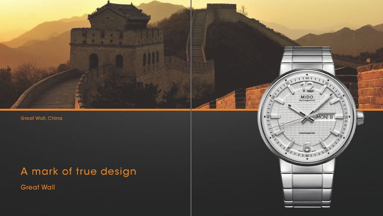 MIDO ha lanzado una campaña completa de promoción para algunos de sus modelos relacionándolos por alguno de sus aspectos estéticos con construcciones emblemáticas como el Coliseo Romano, la Torre Eiffel, la muralla China, la Ópera de Rennes en Francia e incluso el famoso Sydney Harbour Bridge.