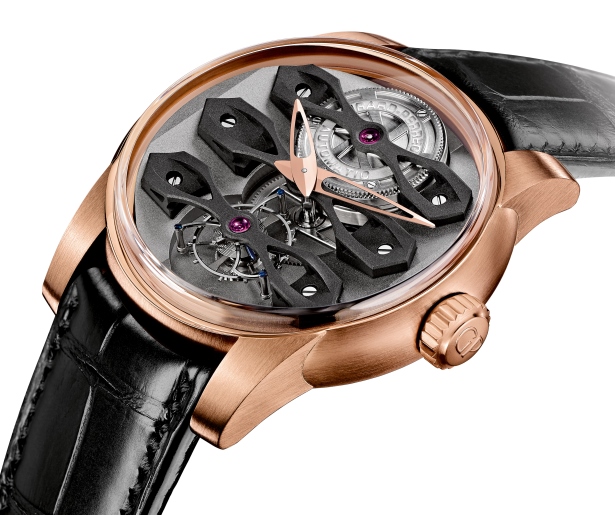 El Neo-Tourbillon Three Bridges presenta un diámetro de 45 mm y tiene un grosor de 14.45 mm.