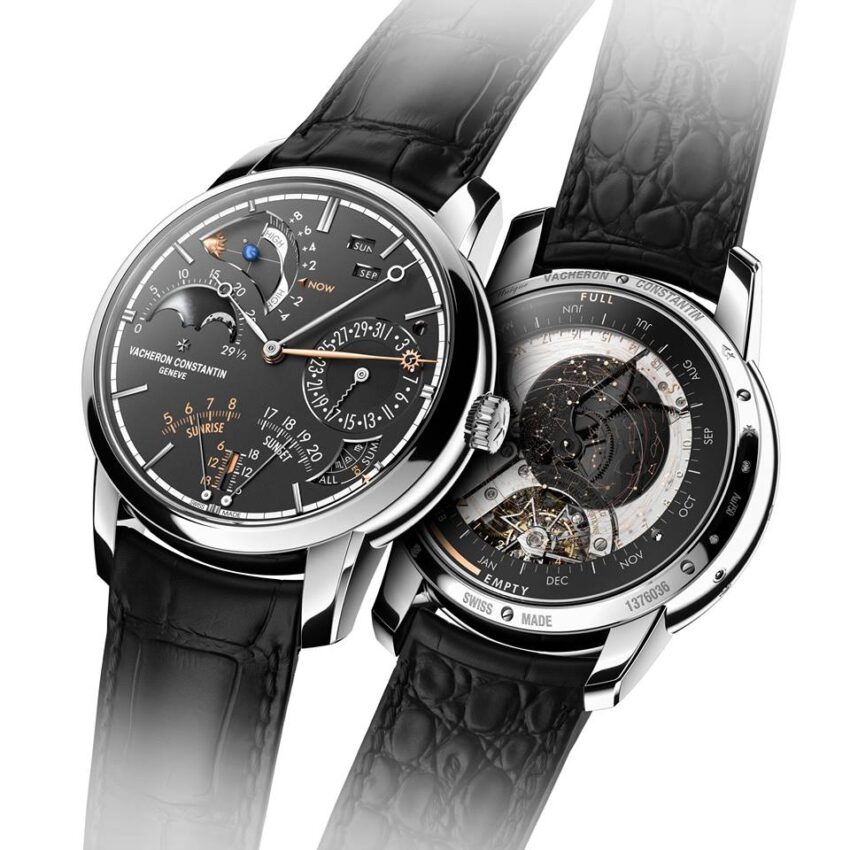 El nuevo calibre 3600 de Vacheron Constantin es un movimiento integrado que consta de 514 piezas y tiene un grosor de solo 8.7 milímetros, una auténtica maravilla de la miniaturización y la ingeniería que controla más de 20 funciones y dispone de una reserva de marcha de tres semanas. Se trata de otro ejemplo más del saber hacer técnico de la Casa en el ámbito de las complicaciones astronómicas, cuyos orígenes se remontan a finales del siglo XIX, cuando los relojes de bolsillo albergaban las funciones de calendario perpetuo, fases lunares y hora sidérea, o también a 1914, año en el que introdujo la ecuación del tiempo “en marcha”.