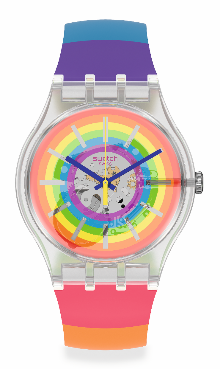 Desde el nacimiento de Swatch en 1983, sus valores de inclusión e igualdad han sido uno de los principales pilares e inspiración para crear piezas relojeras que se adapten a cualquier estilo de vida. Con el fin de representar el símbolo internacional del amor y la esperanza, la colección Open Summer de Swatch utilizó los colores de la bandera del arco iris.