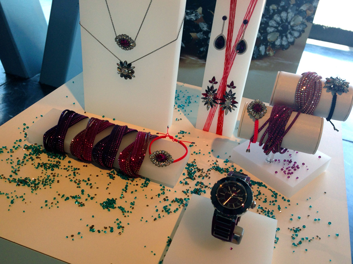 El lugar seleccionado para la presentación de la colección Fall/Winter 2013 es el mismo que el de hace seis meses, ubicado en una azotea de Av. Palmas de la Ciudad de México, el espacio ha sido completamente transformado, brindando un aire de tranquilidad y ambiente oriental muy particular. Cada detalle nos invita a realizar un viaje a través de una línea que hace uso de tres colores principales: negro, blanco y oro rosado, pero que también presume cristales en tonalidad humo sujetos gracias a un nivel de bisutería magistral que presume la técnica Pointiage®, trabajo en pavé y diferentes tallas como Crystal Mesh y Crystal Rock, que resplandecen en collares, brazaletes, anillos, charms, etc.