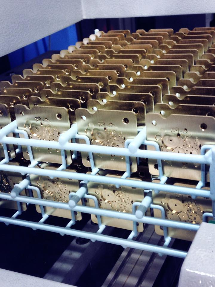 - La base del reloj, platina, y componentes, ébauches, son cortados a la medida específica y con las tolerancias en valores de micras a fin de garantizar un ensamblado preciso.