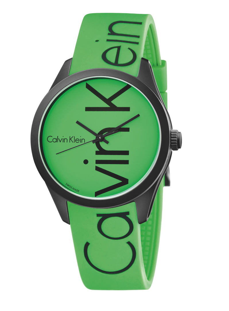 color – celebra los años 90 de Calvin Klein con mucho color. Desarrollado en caja de aluminio con acabado arenado y una cómoda correa de caucho orgullosamente despliega en toda su extensión el icónico logo Calvin Klein.