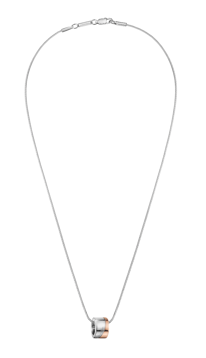 light – adquiere la forma de una gota de agua, por lo que su mensaje es de sencillez y perfección, así lo describe la marca. El juego se compone de collar con pendiente y brazalete, y está desarrollado en acero inoxidable con tratamiento PVD oro rosa.