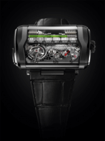 Esta pieza posibilita la indicación de las horas mediante a fluido lineal y retrógrado, mientras que los minutos se ejecutan de la misma manera pero por aguja y se continúa la información con el indicador de posición de la corona (T-N-W), el indicador de la reserva al anverso de la pieza y, un pulsador rota las horas a demanda. La pieza está limitada a una serie de 25 piezas, mientras que su extensión no se guarda nada: 62 X 41 mm y 16 mm más de perfil. ¿Cómo funciona? Mire el siguiente video y disfrute de la máxima ingeniería, ahora ya con complicaciones HYT.