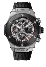 Realizados en un tamaño generoso de caja: 45 mm, las nuevas carrocerías utilizan la cerámica negra y gris, que además de ser hipoalergénica y verse geniales, serán resistentes a rayaduras sin comparación, al tiempo que el motor de manufactura HUBLOT anima a la pieza y a cada una de sus ejecuciones: hora, minuto, segundo y cronógrafo flyback.