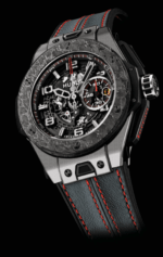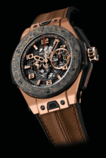 Construidos en titanio y King Gold, ambos relojes poseen un bisel de carbón con incrustaciones de oro o titanio de acuerdo a la referencia seleccionada, esto es producto de seis meses de R&D, y de una pasión por la fusión de materiales inherente a la marca ginebrina. Asimismo, cada pieza cuenta con una correa “one clic”de piel cosida sobre caucho con pespuntes de la guarnicionería Ferrari, Ambas piezas están animadas por el mecanismo HUB 1241 UNICO desarrollado por HUBLOT, un motor de carga automática con cronógrafo y 72 horas de reserva de marcha. Su limitación es de 1000 piezas en titanio y 500 en King Gold para todo el planeta.