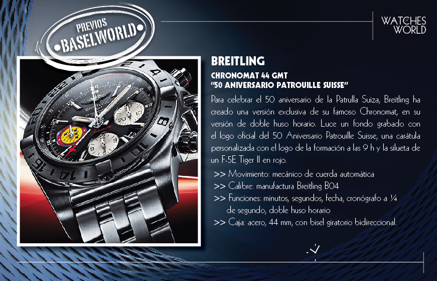 - Breitling Chronomat 44 GMT “50 Aniversario Patrouille Suisse”.