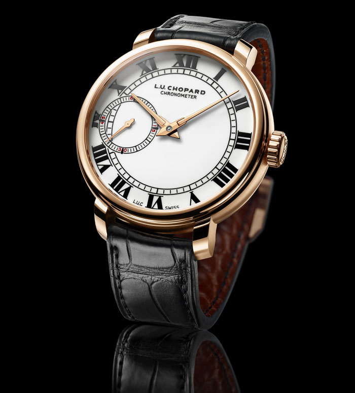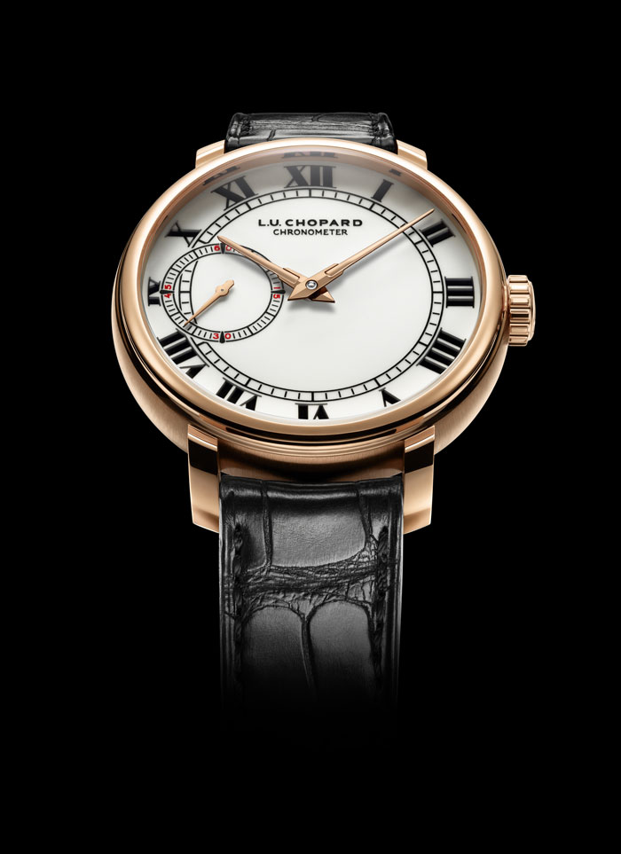L.U.C 1963 de Chopard // Movimiento: mecánico de cuerda manual / Calibre: L.U.C-63.01-L / Frecuencia: 28,800 a/h / Reserva de marcha: 60 horas *certificado COSC y Punzón de Ginebra / Funciones: horas, minutos y segundos / Caja: 44 m de oro rosa / Cristal: de zafiro por ambos lados / Carátula: blanca tipo porcelana y agujas doradas tipo dauphine; segundero pequeño a las 9 h / Correa: de piel de cocodrilo color coñac / Edición Limitada a 50 piezas de oro rosa y 50 más de platino.