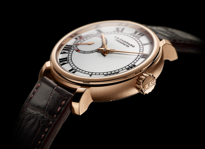 El nuevo L.U.C no es solo una pieza de relojería fina, sino un reloj que rinde homenaje a la búsqueda de la precisión constante, misma que permanece en el ADN de la casa, que es galardonada con los prestigiosos sellos: C.O.S.C y Poinçon de Genève. Esta pieza no es la excepción, pero además integra un diseño sumamente práctico y elegante: la carátula blanca es de tipo porcelana, traslúcida y pura, mientras que el segundero –descentrado a las 9h– nos recuerda la “cara” de los relojes de bolsillo. Sus agujas tipo dauphine hacen juego con los números romanos negros y la minutería en vía de ferrocarril hacen referencia directa a los cronómetros de la belle epoque. Animado por el movimiento mecánico de carga manual: L.U.C 63.01-L, que es una variante reducida del calibre L.U.C 06.01-L, dicho motor cuenta con 38 mm de diámetro, sin embargo, sigue siendo sencillo en cuanto a su concepción arquitectónica dictada por la ausencia de complicaciones, debido a los cánones de la línea.