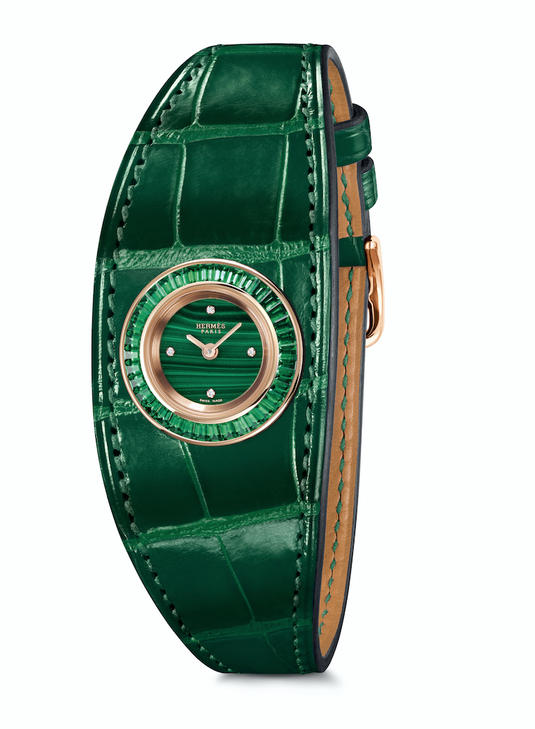 Son ediciones desveladas gracias al taller experto de pelleteria de la Casa, pero también a su atelier de engastado. El reloj está animado por un calibre de cuarzo de alta precisión, mientras que la correa se presenta en colores azul zafiro, etrusco, verde esmeralda o negro. La caja mide 19.5 mm de extensión, y está construida en oro rosa 750 u oro blanco.