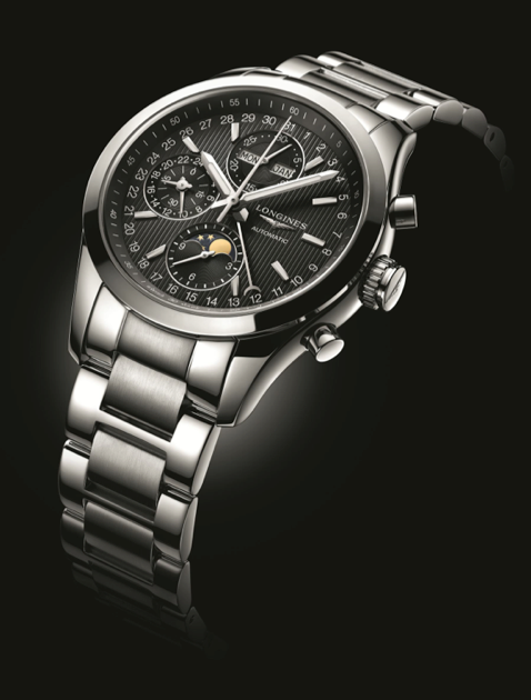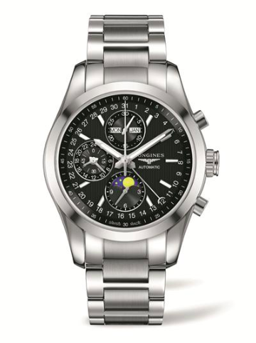 Longines presentará un nuevo modelo de cronógrafo de acero, el Conquest Classic Moonphase, que funciona con un movimiento mecánico automático.La sofisticación de este reloj, que incluye una visualización de las fases de la luna, lo convierte en una pieza decididamente refinada para usar en los eventos deportivos más populares. No obstante, el reloj oficial del torneo es un Conquest 1/100 Roland Garros, capaz de cuantificar centésimas de segundo.