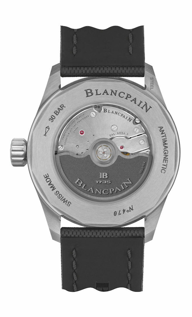 La caja de acero satinado de 43 mm, alberga un nuevo movimiento 6054.P desarrollado en base al calibre Blancpain 1150. A través de una pulsera de tela de vela, NATO o metal, Fifty Fathoms Bathyscaphe Quantième Annuel se abrazará al compás de su muñeca.