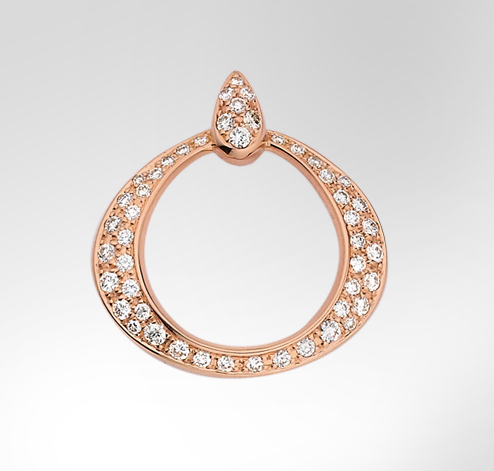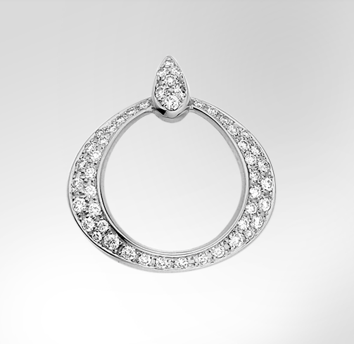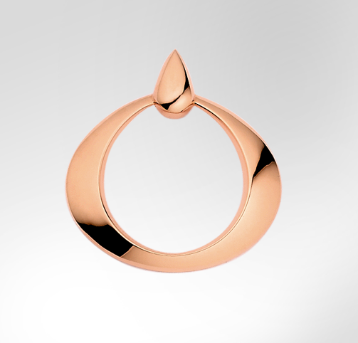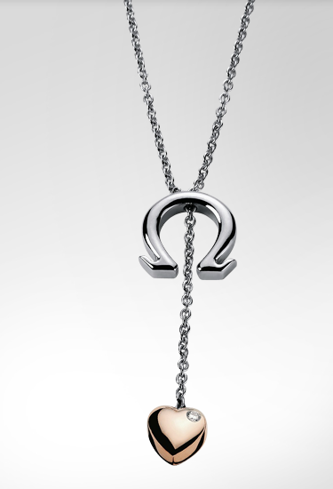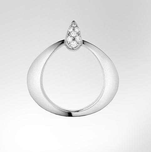 Tiene como fuente de inspiración el logo de Omega en un diseño ovalado que luce en la parte superior una pequeña gota ya sea pulida, o con diamante.