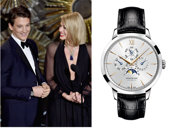- Miles Teller (Whiplash) con un reloj Montblanc Heritage Chronometrie Perpetual Calendar (111715) y mancuernillas Montblanc (6309).