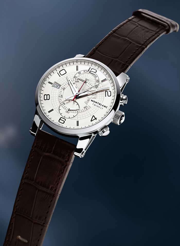 - Este cronógrafo con su inconfundible estilo TimeWalker combina la función de cronógrafo, tan popular entre los hombres, y un indicador de la hora en una segunda zona horaria. Esto une dos complicaciones que son extremadamente útiles en la vida diaria. Y logra con esta unión, de una manera poco convencional, la ubicación central tanto para la manecilla de los segundos transcurridos como para la manecilla de los sesenta minutos. Esta disposición de elementos fue muy popular hace cuarenta años, pero quedó en el olvido con el paso del tiempo. Eso fue difícil de entender porque esta disposición mejora la lectura de la medición de los tiempos transcurridos y libera al mismo tiempo espacio para una subcarátula con una escala de 24 horas, que muestra la hora en una segunda zona horaria. El pequeño segundero a las 6 horas y la ventana del fechador a las 3 horas completan el conjunto de esta exclusiva pieza relojera altamente funcional.
