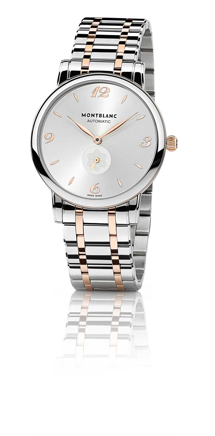 - Emociones particularmente fuertes son evocadas por los relojes de pulso, que no solo combinan la perfección artesanal, la precisión tradicional suiza y una estética clásica atemporal; sino que también contienen un mensaje romántico. Algunas piezas están disponibles en modelos para dama o caballero que en apariencia son idénticos y difieren sólo por su dimensión. Un ejemplo perfecto de esta categoría es el nuevo Star Classique Oro Acero Automático de Montblanc, es el punto culminante del diseño relojero clásico y cumple con todos los requisitos para llegar a convertirse en un auténtico clásico.