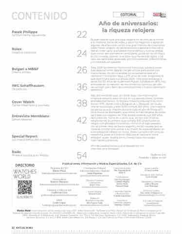 Watches World, revista trimestral edición setenta y dos, mayo 2025. Editor Responsable: Guillermo Lira Plaza. Número de Certificado de Reserva otorgado por el