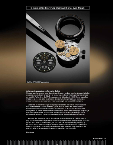 dorados que indican la fecha y el mes, inspirados en los legendarios relojes