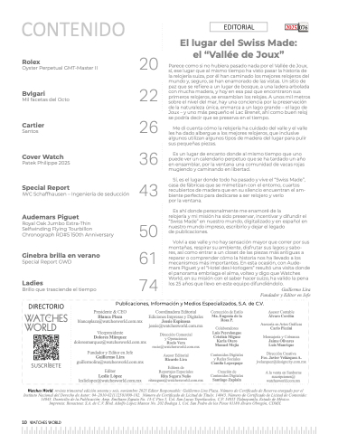 Watches World, revista trimestral edición setenta y seis, noviembre 2025 Editor Responsable: Guillermo Lira Plaza. Número de Certificado de Reserva otorgado por el